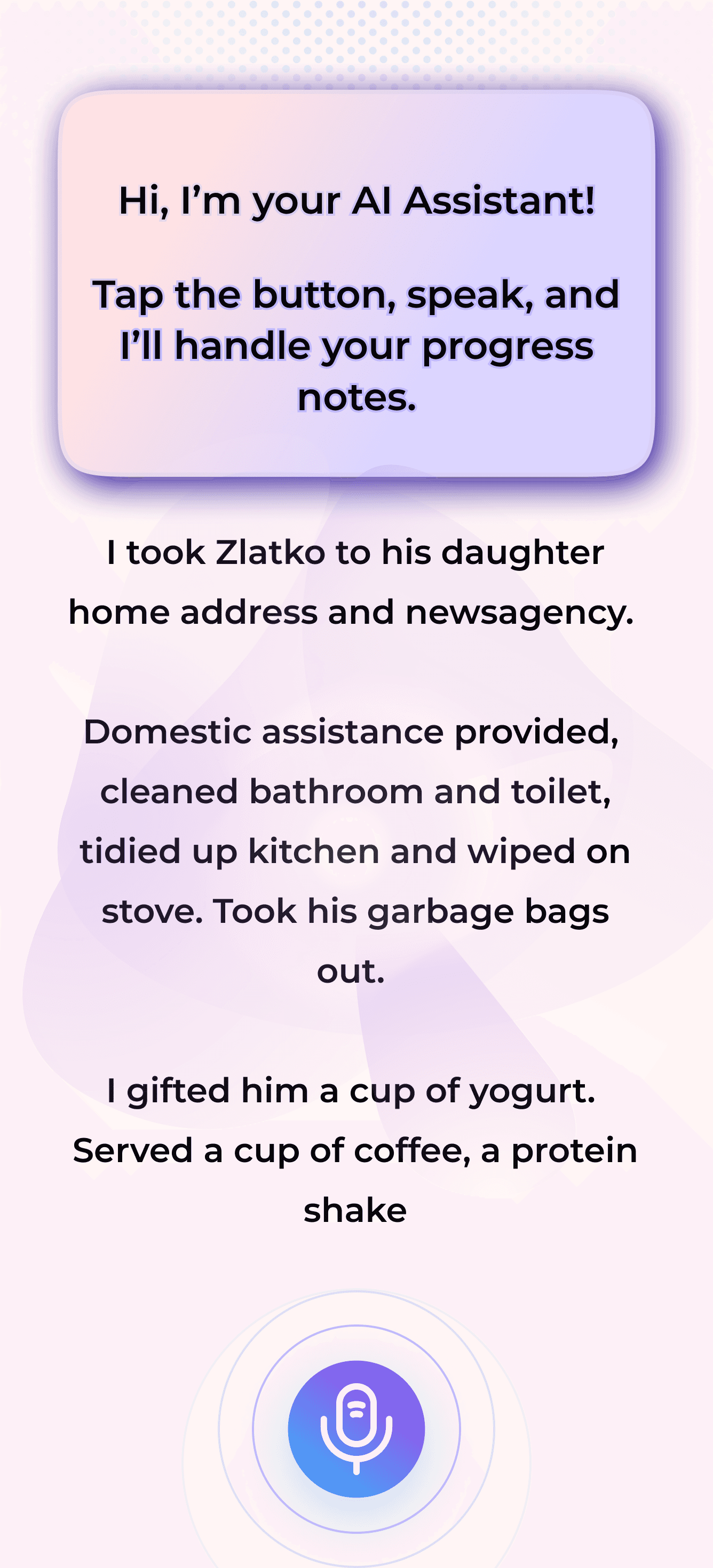 Conversation AI to provide service details, logging progress notes, collect feedback for quality reporting